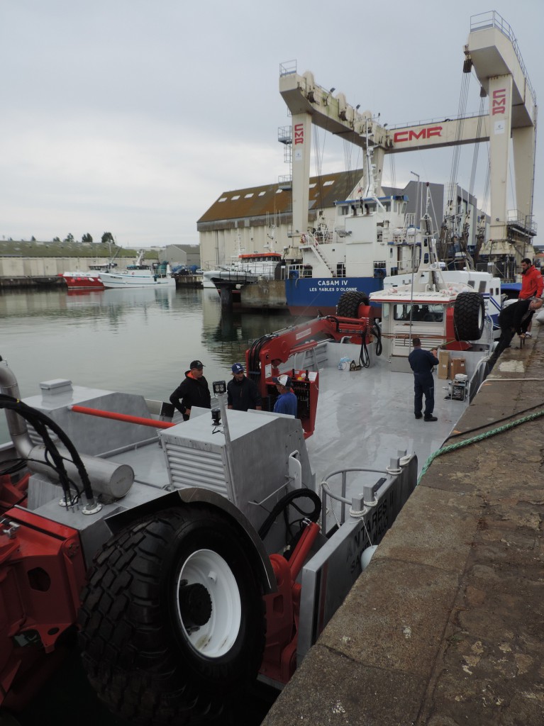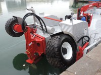 Navire amphibie à roues intégralement relevables